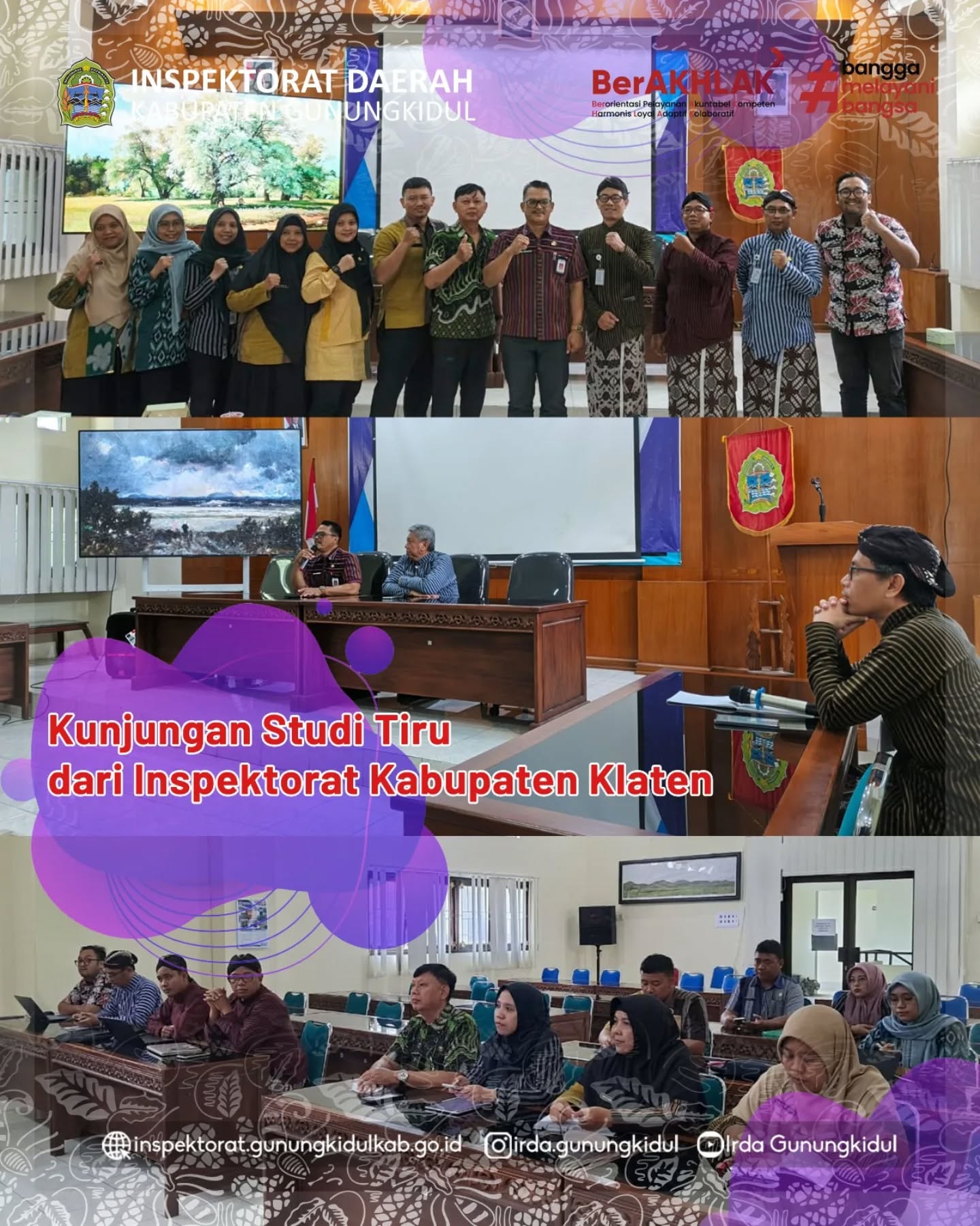 Wonosari, Selasa (03/02/2026) — Inspektorat Daerah Kabupaten Gunungkidul menerima kunjungan dari Inspektorat Daerah Kabupaten Malang dan Temanggung. Materi yang diambil terkait