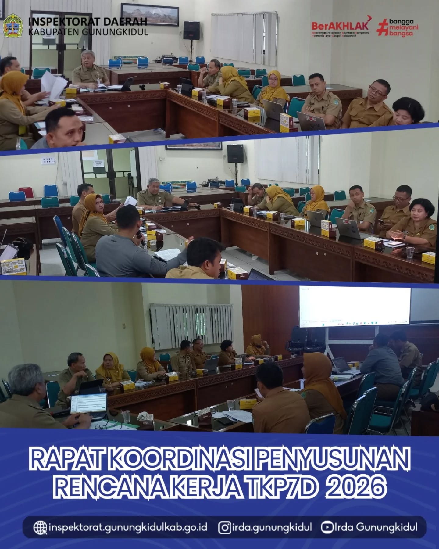 Wonosari, Selasa (10/02/2026) — Dalam rangka pelaksanaan tugas Tim Koordinasi PengawasanPenyelenggaraan Perizinan, Pelayanan Publik, dan Pengelolaan Pendapatan Daerah (TKP7D) melaksanakan Rapat