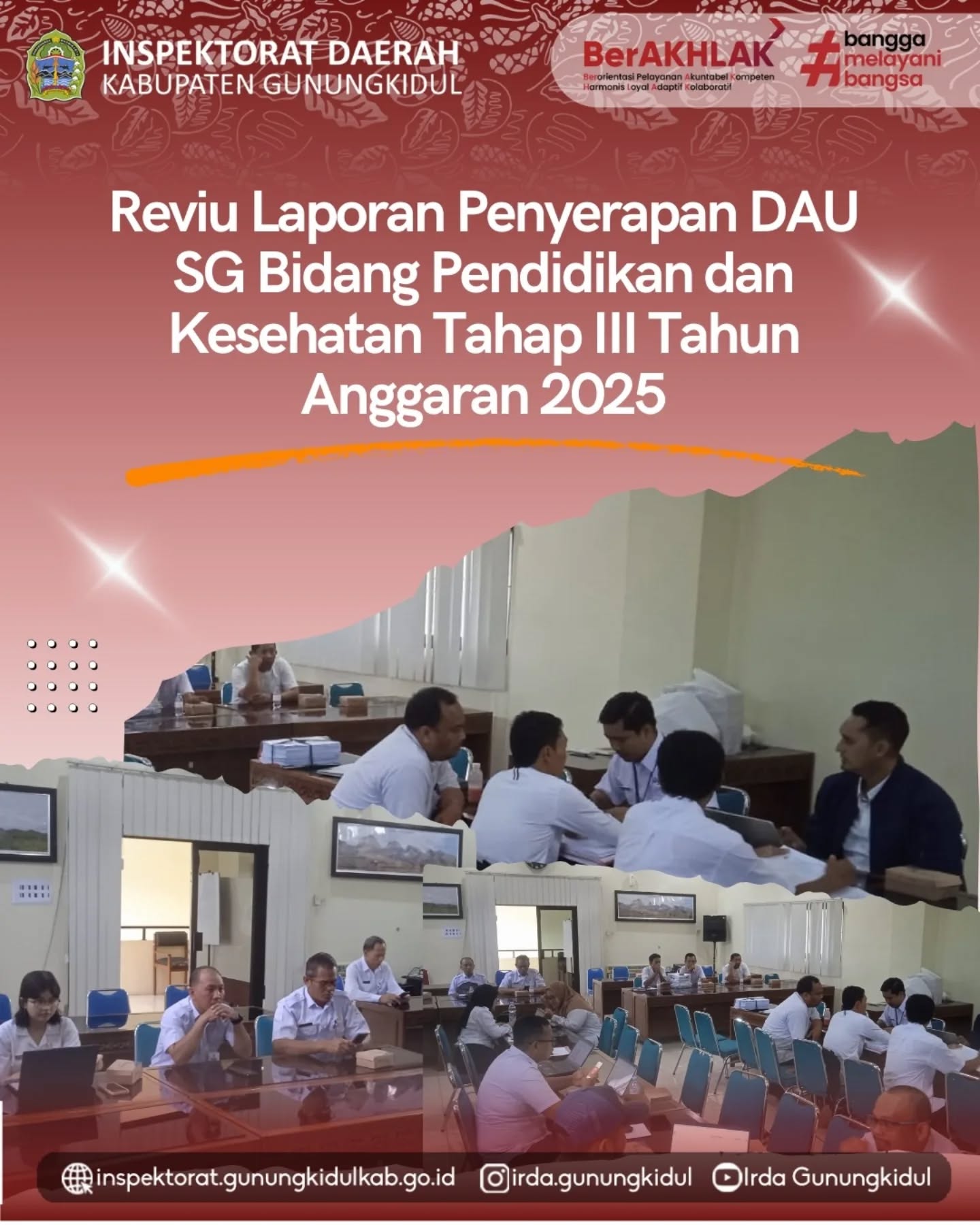 Wonosari, Rabu (11/02/2026) — Inspektorat Daerah Kabupaten Gunungkidul melaksanakan Desk Reviu Laporan Penyerapan Dana Alokasi Umum (DAU) Spesifik Grant (SG) Bidang