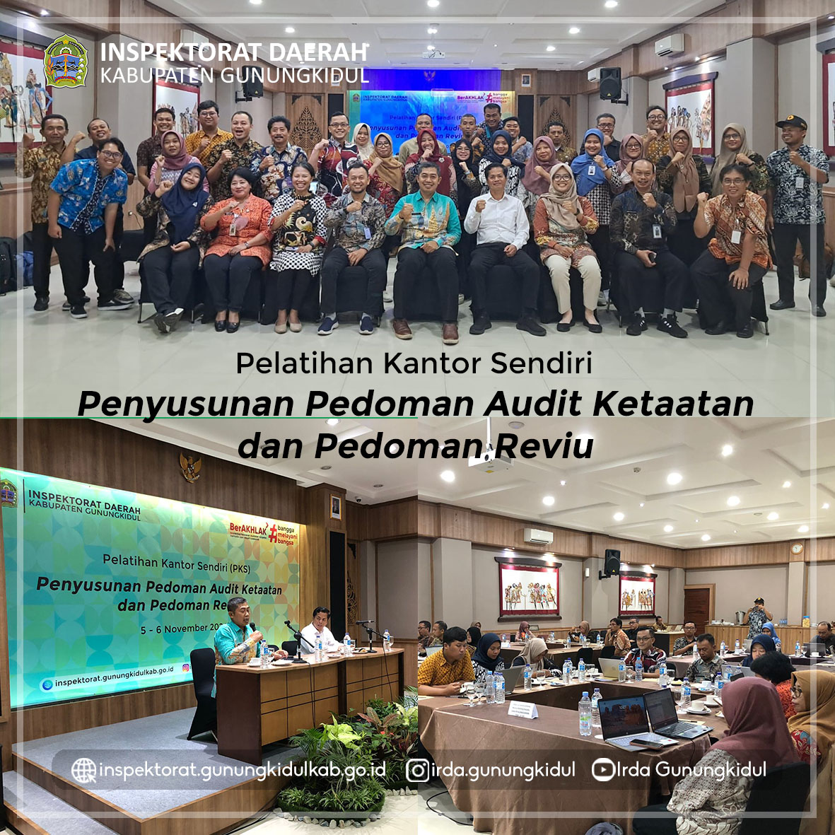 Inspektur Daerah Kabupaten Gunungkidul, Saptoyo, S.Sos M.Si memberikan sambutan pembukaan dan menyampaikan pengarahan terkait dengan tujuan dilaksanakannya PKS kali ini juga menyampaikan mudah-mudahan dengan Pelatihan Kantor Sendiri (PKS) ini akan mendatangkan banyak manfaat bagi peserta dan diharapkan setelah PKS selesai Pedoman Audit Ketaatan dan Reviu Manajemen Risiko 2024 segera disahkan. Kegiatan PKS dilaksanakan selama 2 (dua) hari dengan materi Pedoman Audit Ketaatan dan Pedoman Reviu serta pendampingan/penyelarasan penyusunan paeraturan.