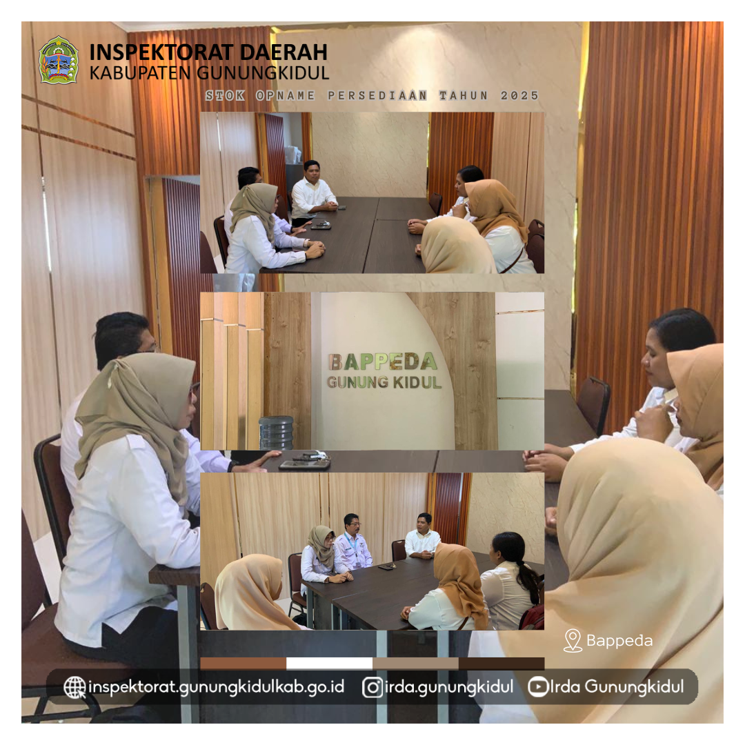 Pada hari Rabu, 31 Desember 2025, Tim I PPUPD melaksanakan stok opname persediaan pada Bappeda dan Bakesbangpol Kabupaten Gunungkidul, dengan melakukan pencocokan fisik persediaan terhadap data pencatatan yang tercantum dalam sistem dan administrasi pengelolaan barang.