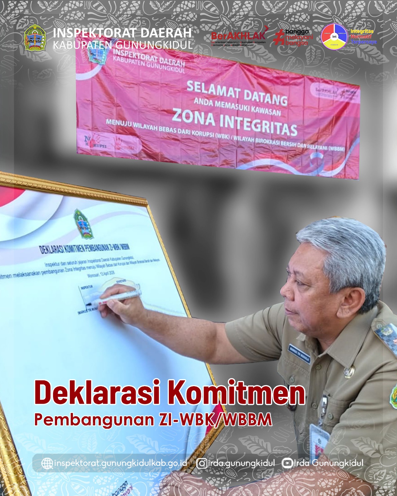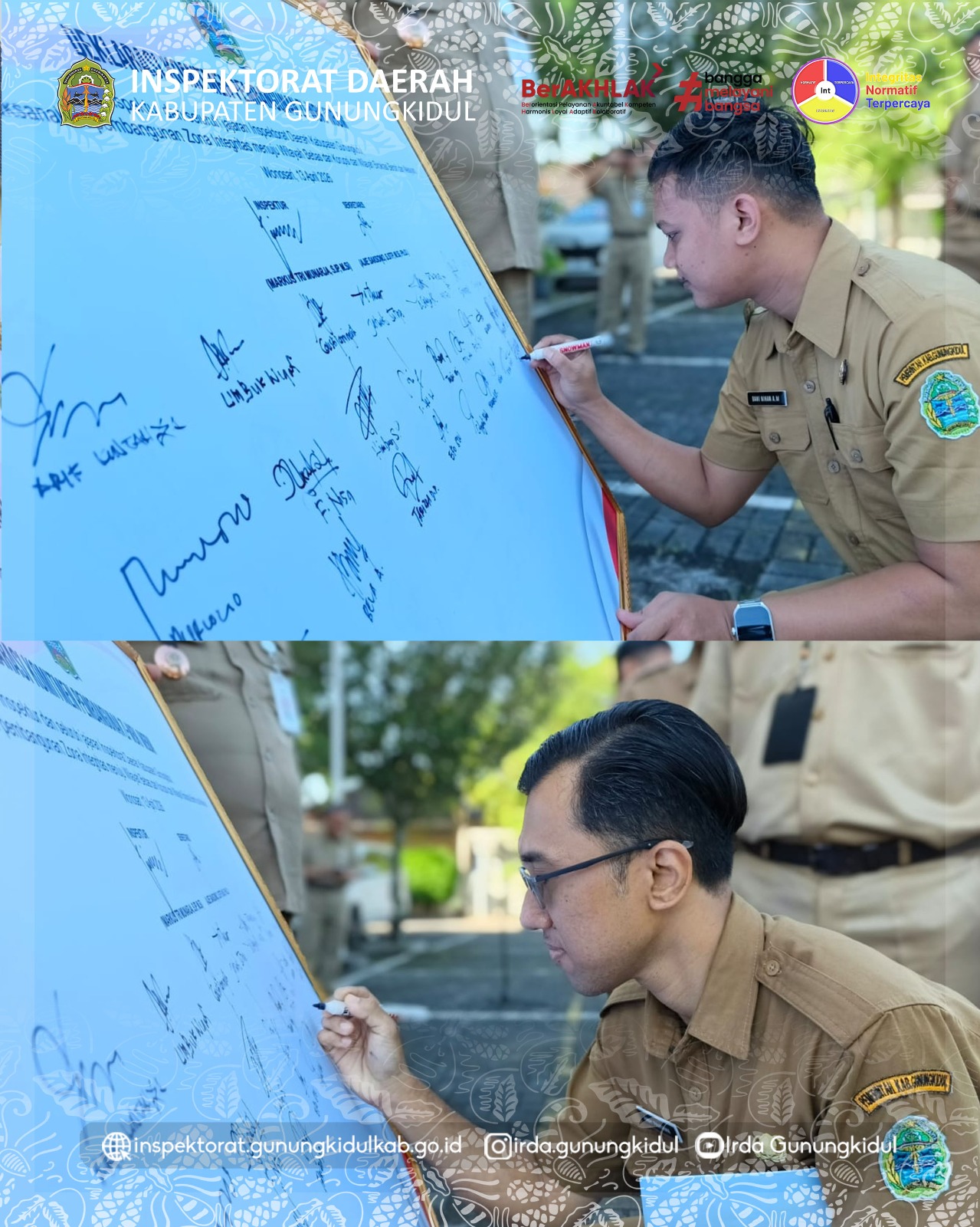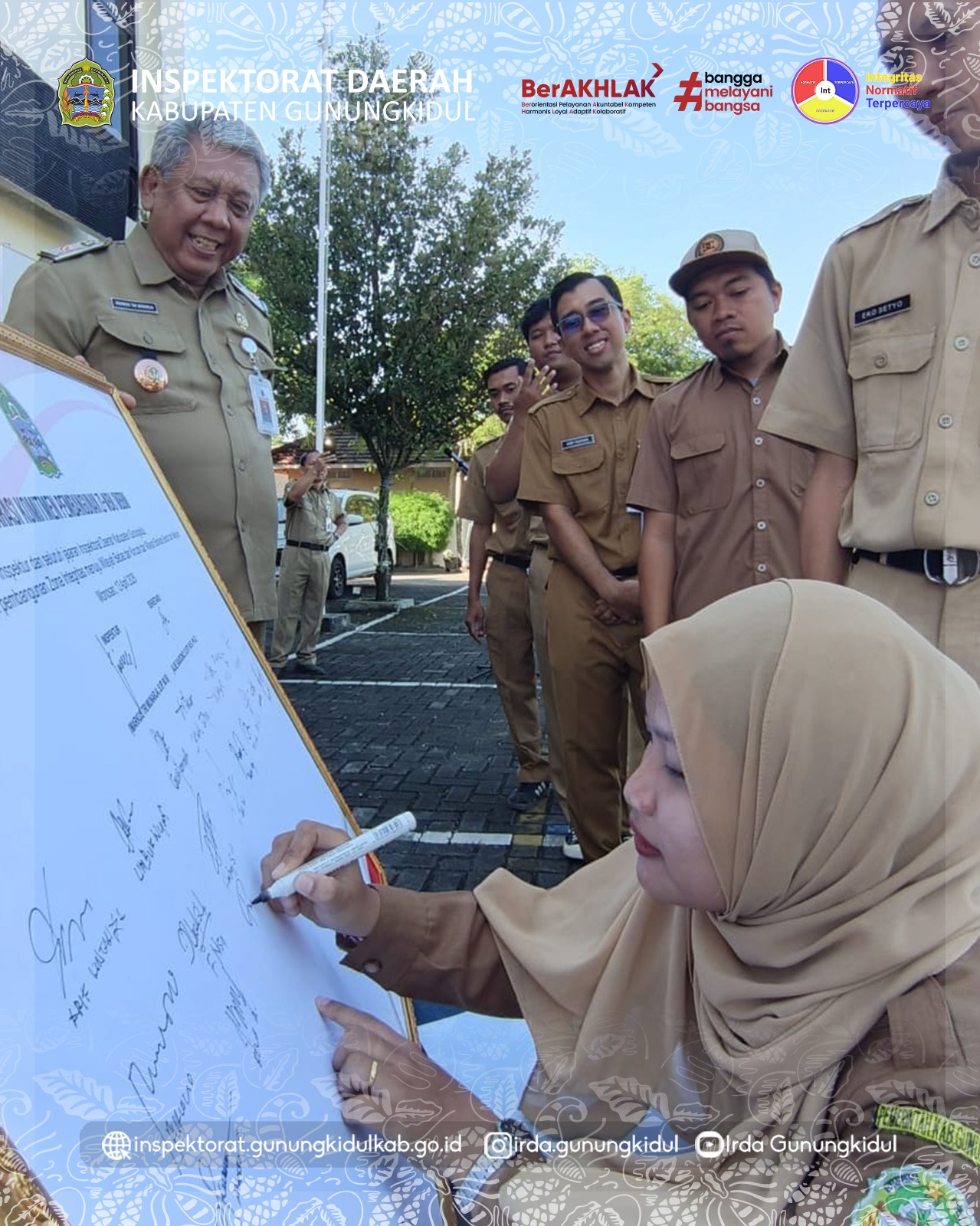 Melalui penandatanganan komitmen ini, Inspektorat Daerah Kabupaten Gunungkidul menegaskan kesungguhan seluruh jajaran dalam mewujudkan birokrasi yang bersih, akuntabel, dan berorientasi pada pelayanan publik yang berkualitas. Langkah ini menjadi bagian penting dalam membangun budaya kerja berintegritas serta meningkatkan kepercayaan masyarakat.