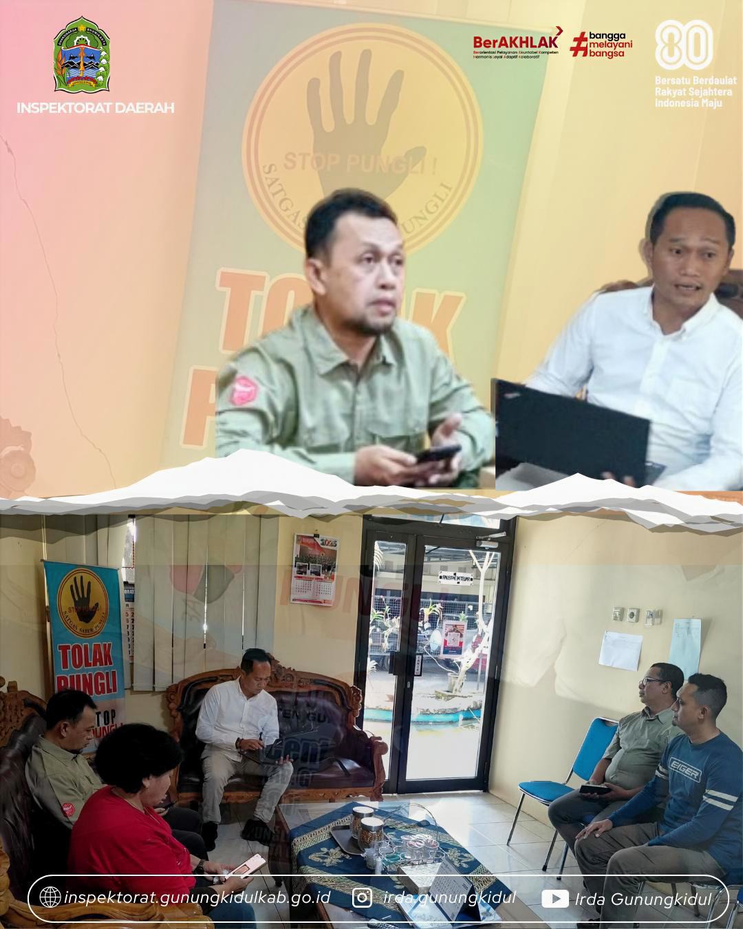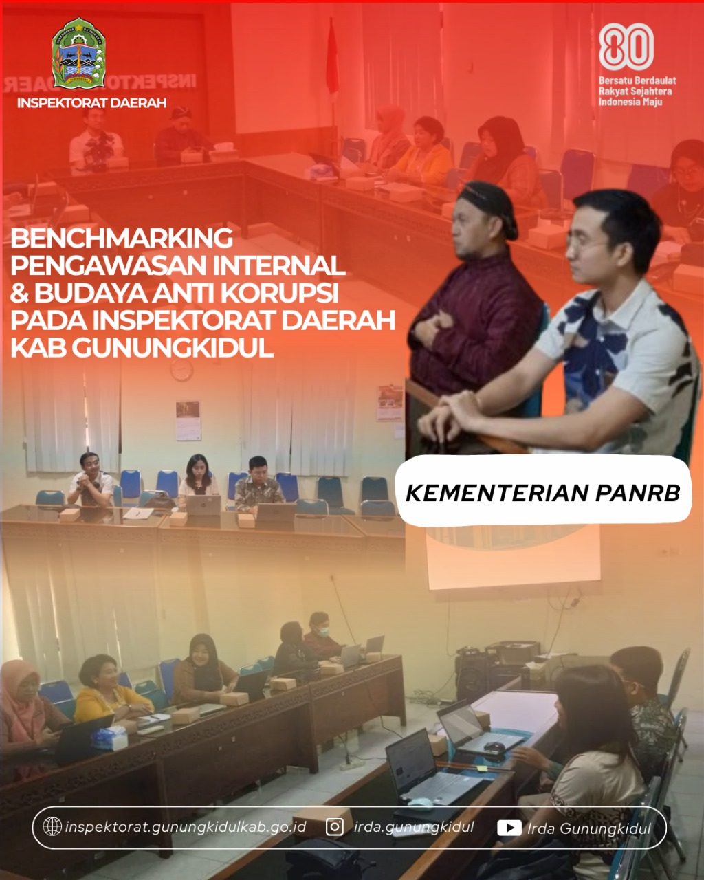 Wonosari, Kamis (14/08/2025) – Inspektorat Daerah Kabupaten Gunungkidul menerima kunjungan kerja dari Kementerian Pendayagunaan Aparatur Negara dan Reformasi Birokrasi (PANRB) dalam rangka penguatan sistem pencegahan korupsi dan bertempat di Ruang Rapat Inspektorat Daerah. Kegiatan ini difokuskan pada pelaksanaan benchmarking pengawasan internal dan penguatan budaya anti korupsi di lingkungan Pemerintah Kabupaten Gunungkidul. Kunjungan ini dihadiri oleh tim […]