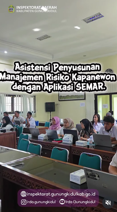 Wonosari, Rabu (15/10/2025) — Inspektorat Daerah Kabupaten Gunungkidul melaksanakan kegiatan Asistensi Penyusunan Manajemen Risiko (MR) melalui Aplikasi SEMAR yang diikuti oleh Perangkat Daerah dari 18 (delapan belas) Kapanewon di lingkungan Pemerintah Kabupaten Gunungkidul. Kegiatan ini bertujuan untuk meningkatkan pemahaman dan kapasitas perangkat daerah dalam menerapkan manajemen risiko secara sistematis dan terdokumentasi melalui platform digital SEMAR. […]
