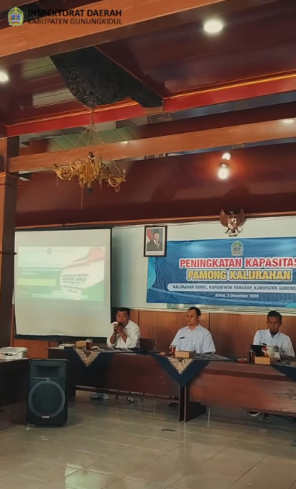 Wonosari, Rabu (03/12/2025) — Bertempat di Pendopo Balai Kalurahan Bohol, telah dilaksanakan kegiatan Pembinaan Peningkatan Kapasitas Perangkat Kalurahan sebagai upaya memperkuat profesionalitas dan kualitas tata