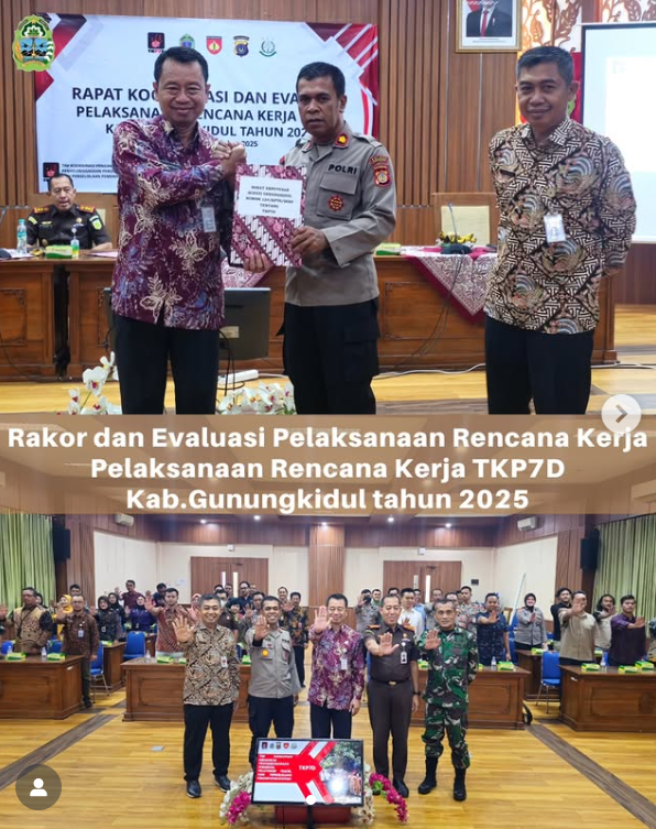 Wonosari, Jumat (05/12/2025) — Pemerintah Kabupaten Gunungkidul menggelar Rapat Koordinasi dan Evaluasi Pelaksanaan Rencana Kerja Tim Koordinasi Pengawasan Penyelenggaraan Perizinan, Pelayanan Publik, dan Pengelolaan Pendapatan