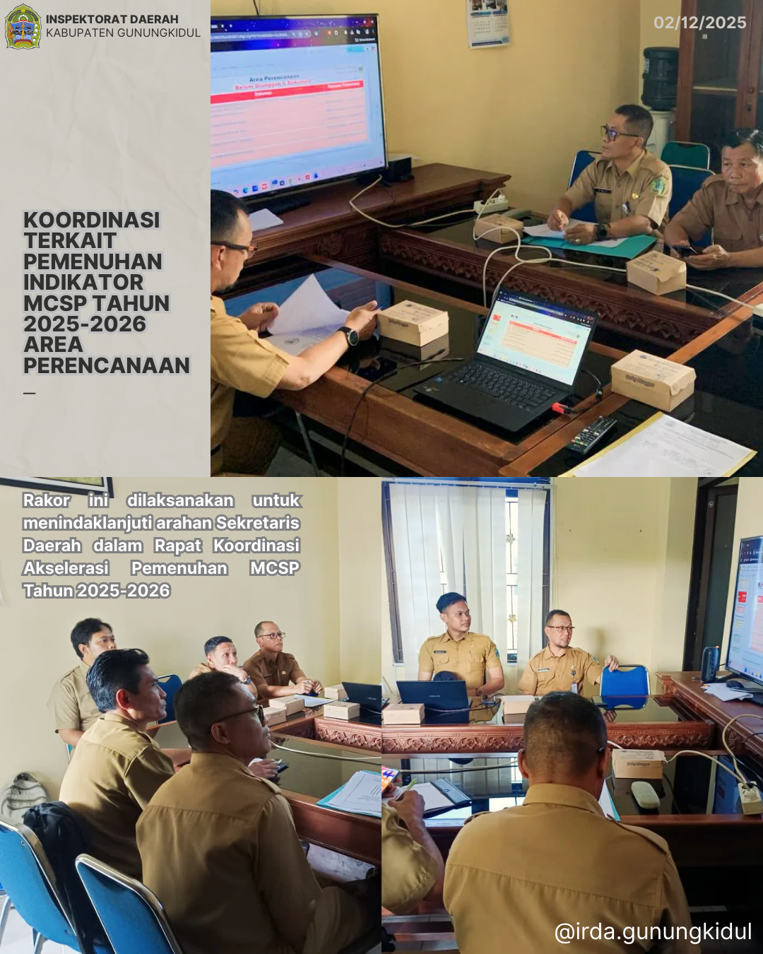 Wonosari, Selasa (02/12/2025) — Memperkuat mekanisme pengawasan preventif serta memastikan seluruh indikator MCSP (Monitoring Controlling Surveillance for Prevention) pada Area Perencanaan dapat terpenuhi secara optimal