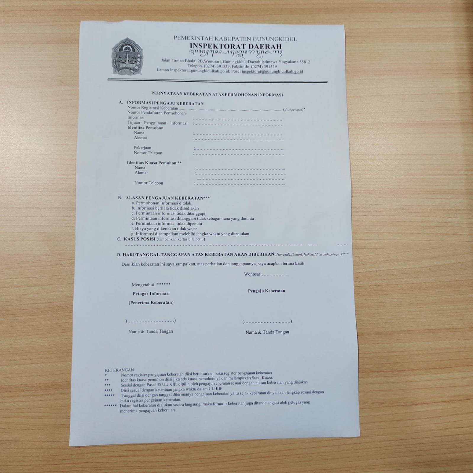 Form permohonan dan keberatan (hardcopy)Download